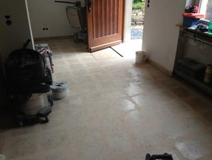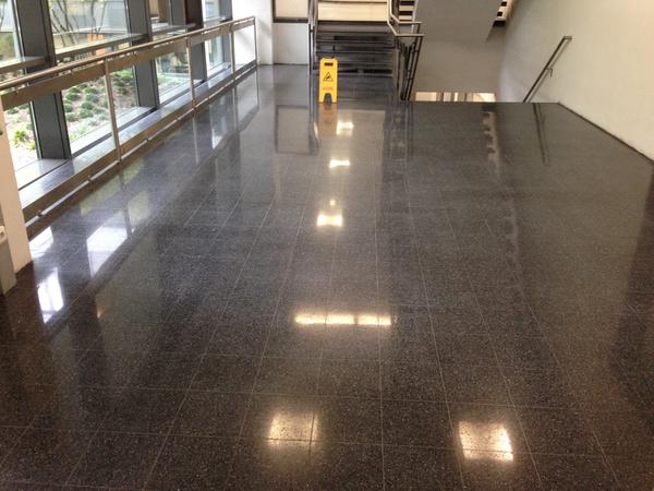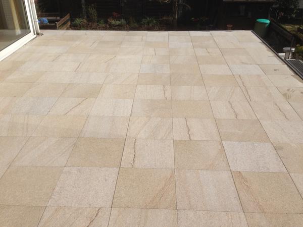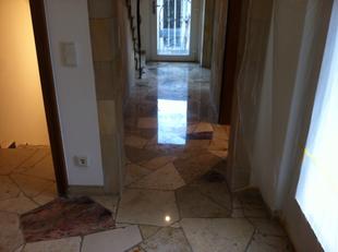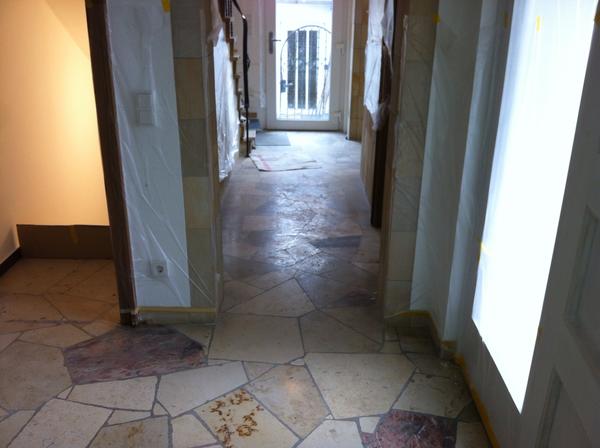 Wiederherstellen der Rutschhemmung verwitterter Sandsteinböden. Neu in unserer Angebotspalette sind Sanierungsarbeiten auf Sandsteinbelägen.