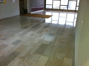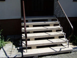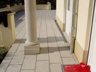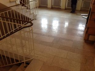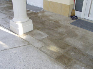 Wiederherstellen der Rutschhemmung verwitterter Sandsteinböden. Neu in unserer Angebotspalette sind Sanierungsarbeiten auf Sandsteinbelägen.