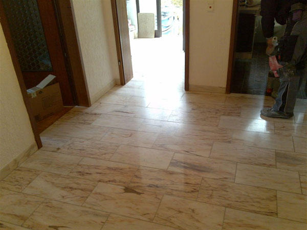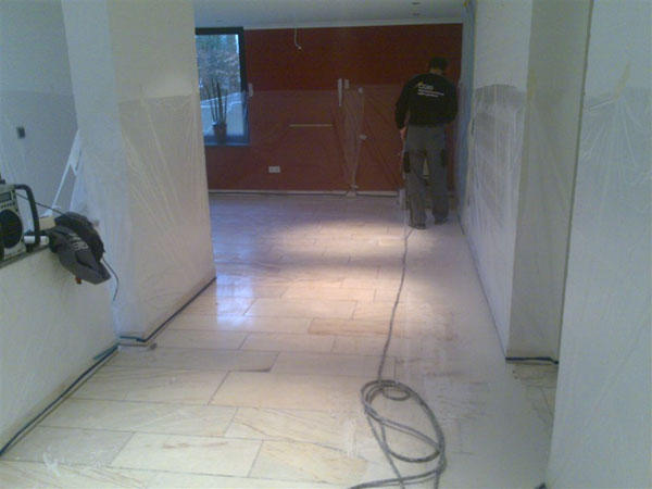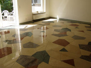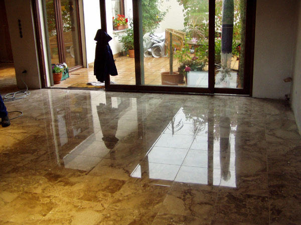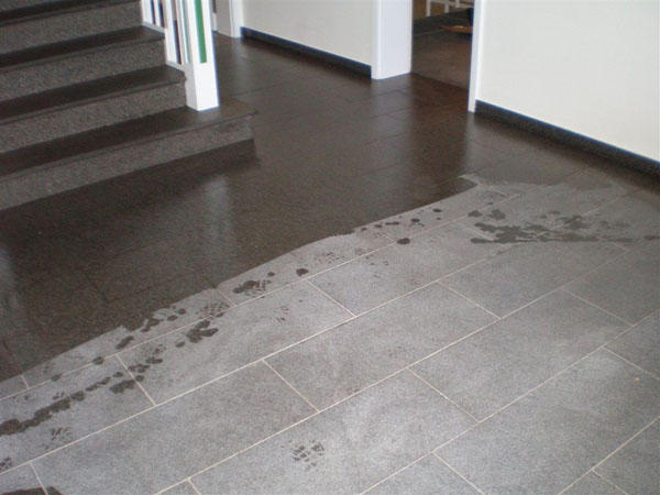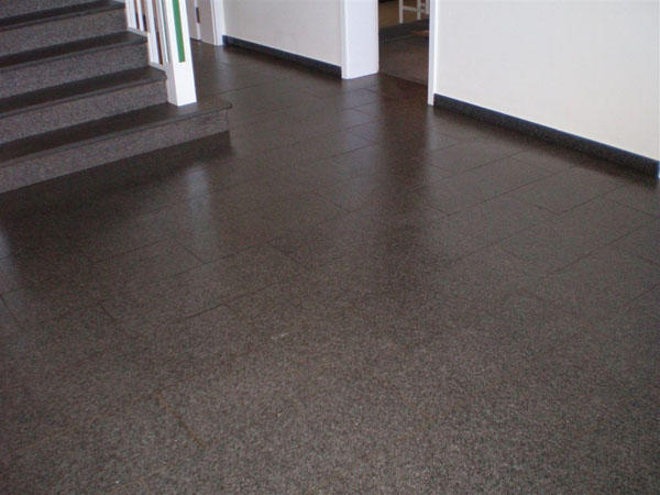 Wiederherstellen der Rutschhemmung verwitterter Sandsteinböden. Neu in unserer Angebotspalette sind Sanierungsarbeiten auf Sandsteinbelägen.
