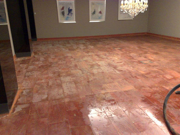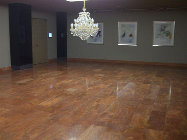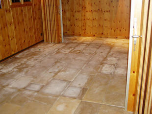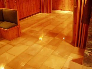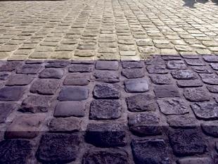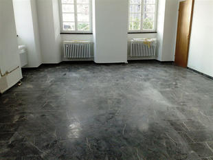 Wiederherstellen der Rutschhemmung verwitterter Sandsteinböden. Neu in unserer Angebotspalette sind Sanierungsarbeiten auf Sandsteinbelägen.